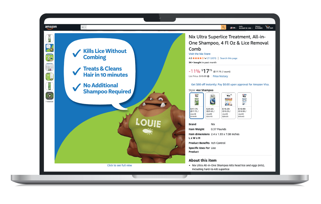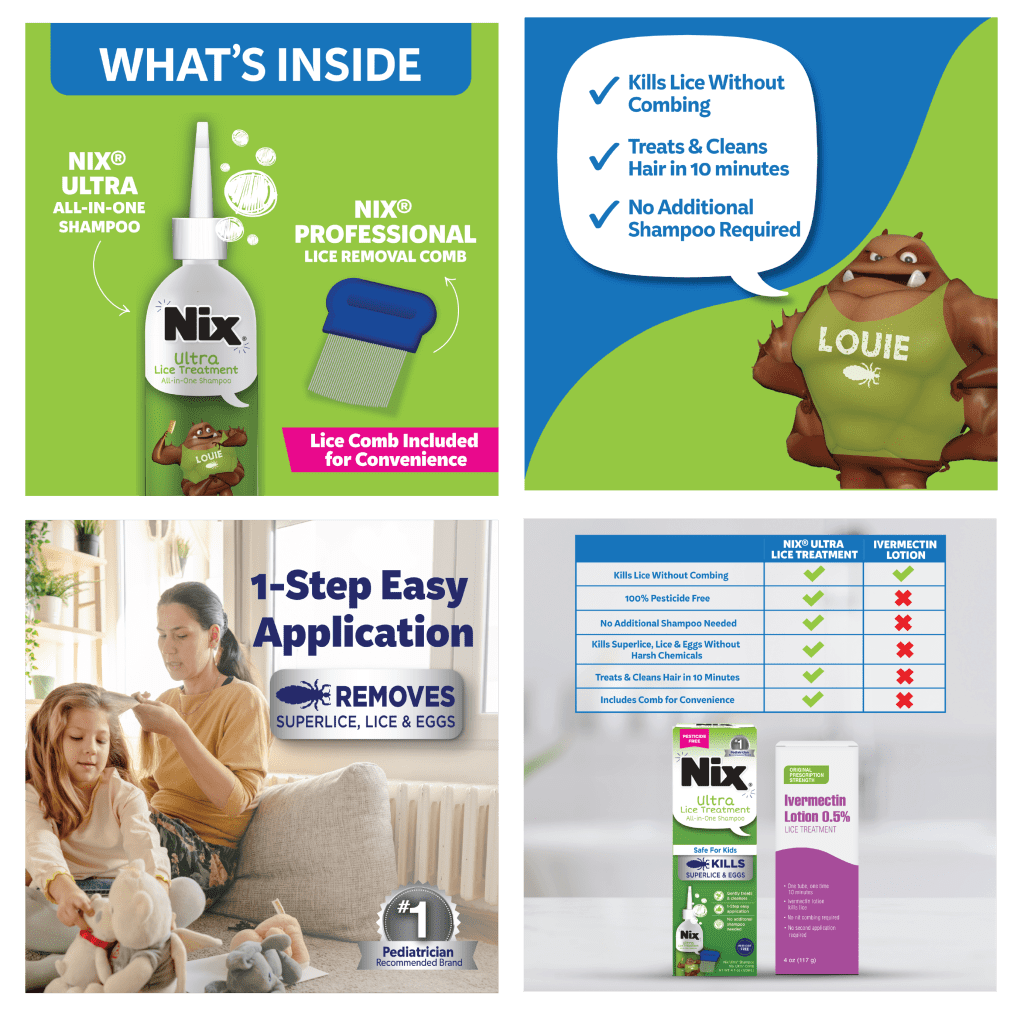 Most often, the consumer searches online to assess before purchasing products. This is why brands need to be ready to communicate, educate and differentiate. These tiles created for Nix® allow the brand to continue the visual story the packaging introduces, keeping true to brand look and feel, and defending against new competitors/ ingredients in the category, such as Ivermectin.